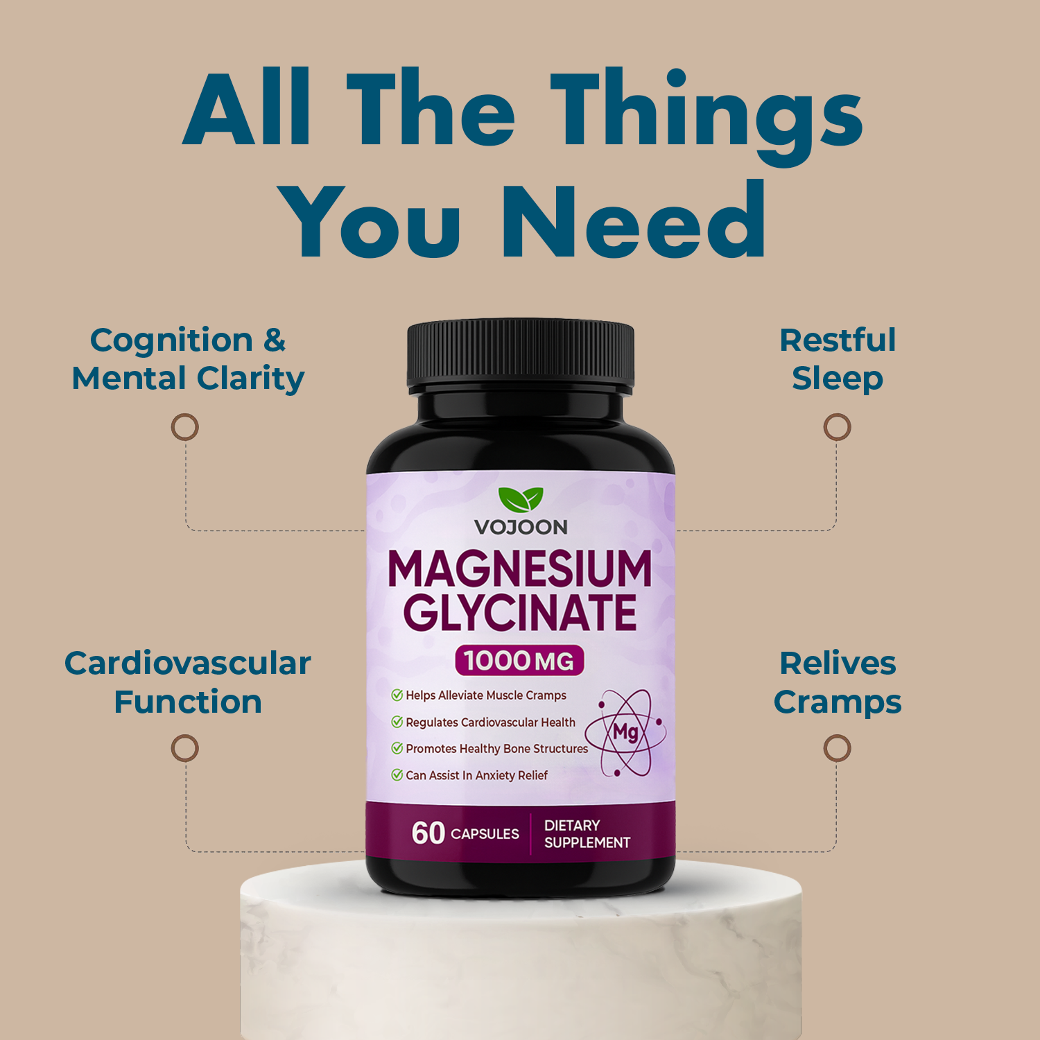 Magnesium Glycinate supports restful sleep, muscle relaxation, and mental calmness, helping the body manage stress and recover better.